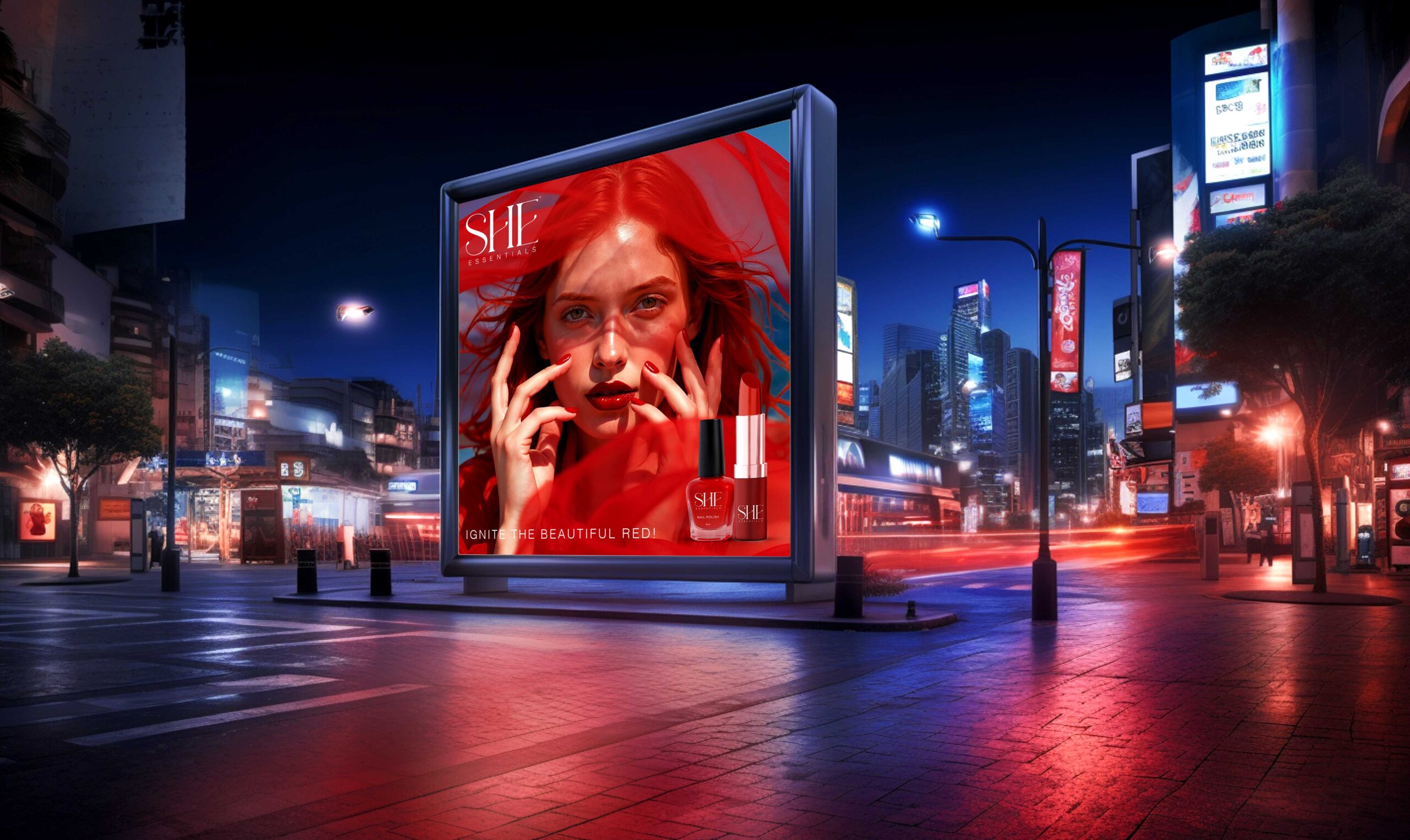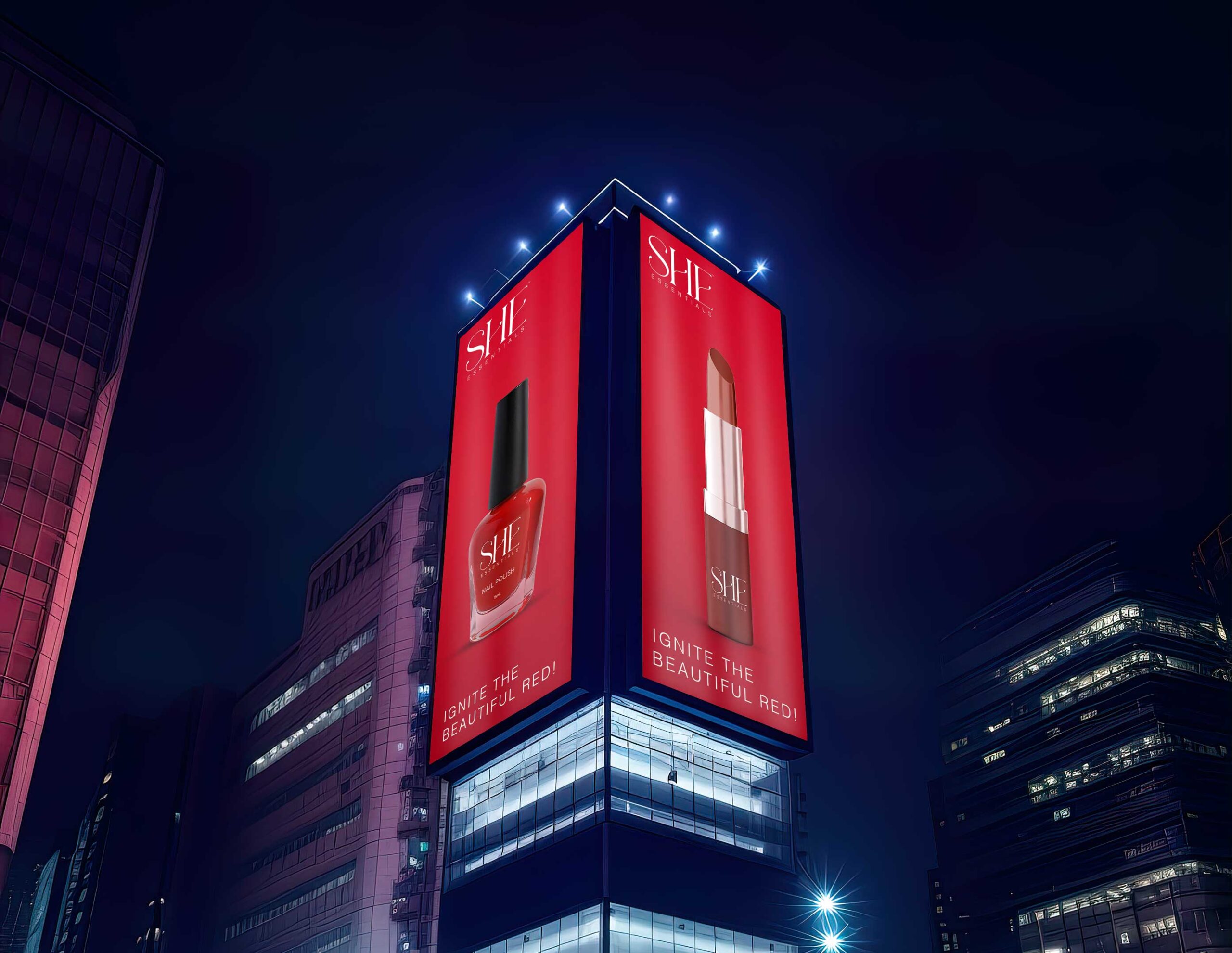 For SHE Essentials, OWL Studio developed a visually evocative thematic campaign celebrating the power of red, bold, expressive, and, unapologetically confident.